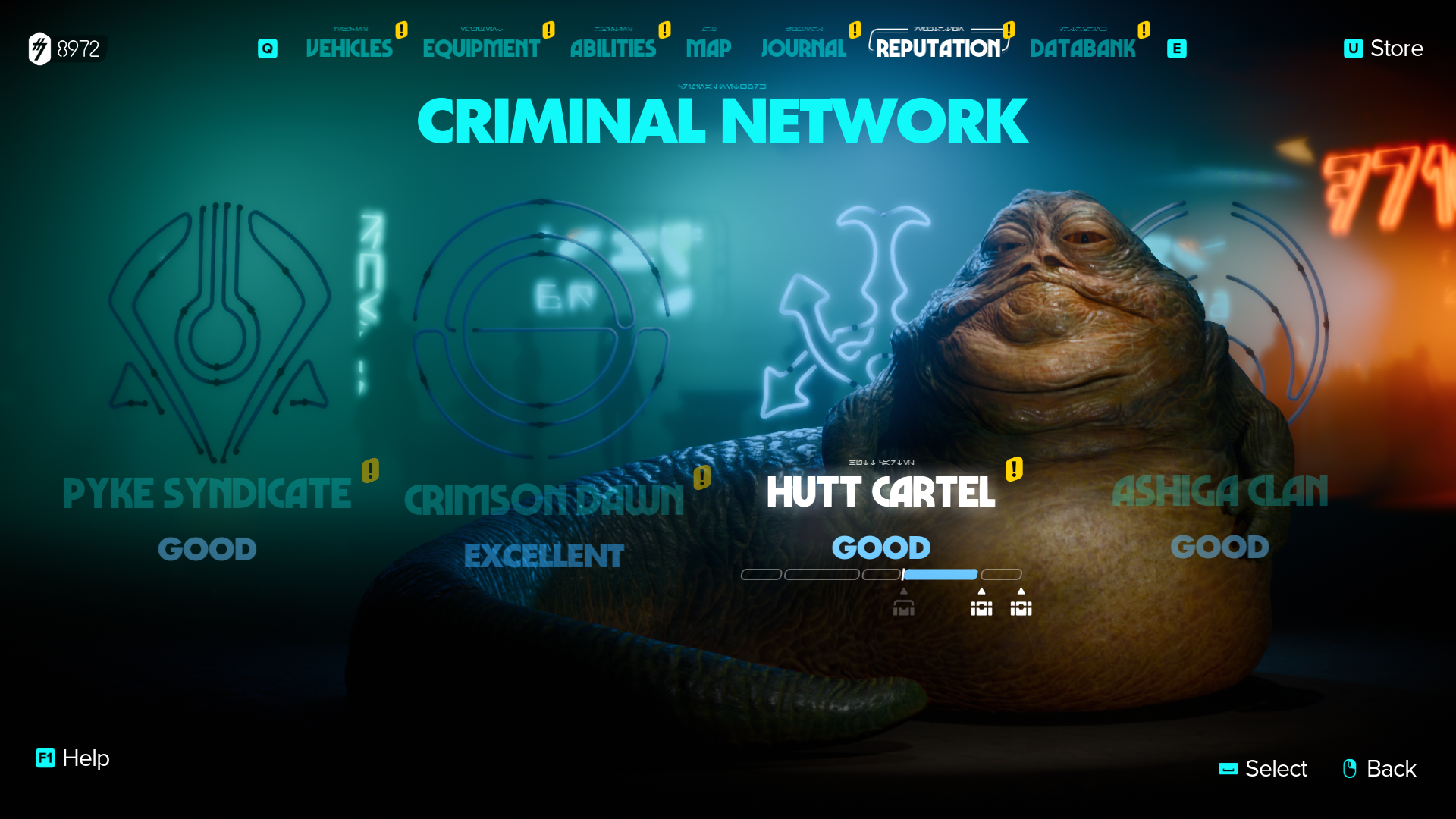 Fixers and contract givers open up as you gain reputation for a faction. Hot tip is to find minor missions for each syndicate that give minor gains but don’t decrease reputation with other factions. Alternatively you can also gain rep by selling data discs you find scattered around the galaxy. These you can sell to faction vendors to gain very small reputation gains. This can often be what you need towards the mid / end game to get good reputation with everyone and free access to all the maps.